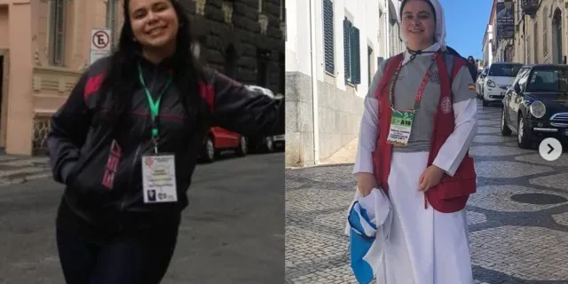Recentemente, a irmã compartilhou em suas redes sociais a comparação entre sua vida atual e a que tinha há 10 anos. Em 2013 ela participou da JMJ no Rio com seu grupo de jovens; agora, em 2023, foi para a JMJ de Lisboa como religiosa.