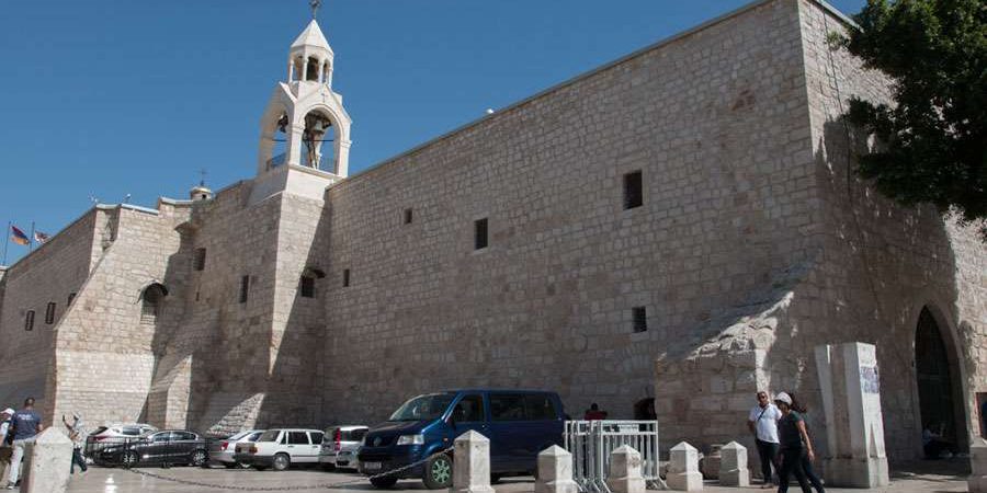 Ao lado da Basílica da Natividade, a praça próxima e todas as lojas também estão fechadas