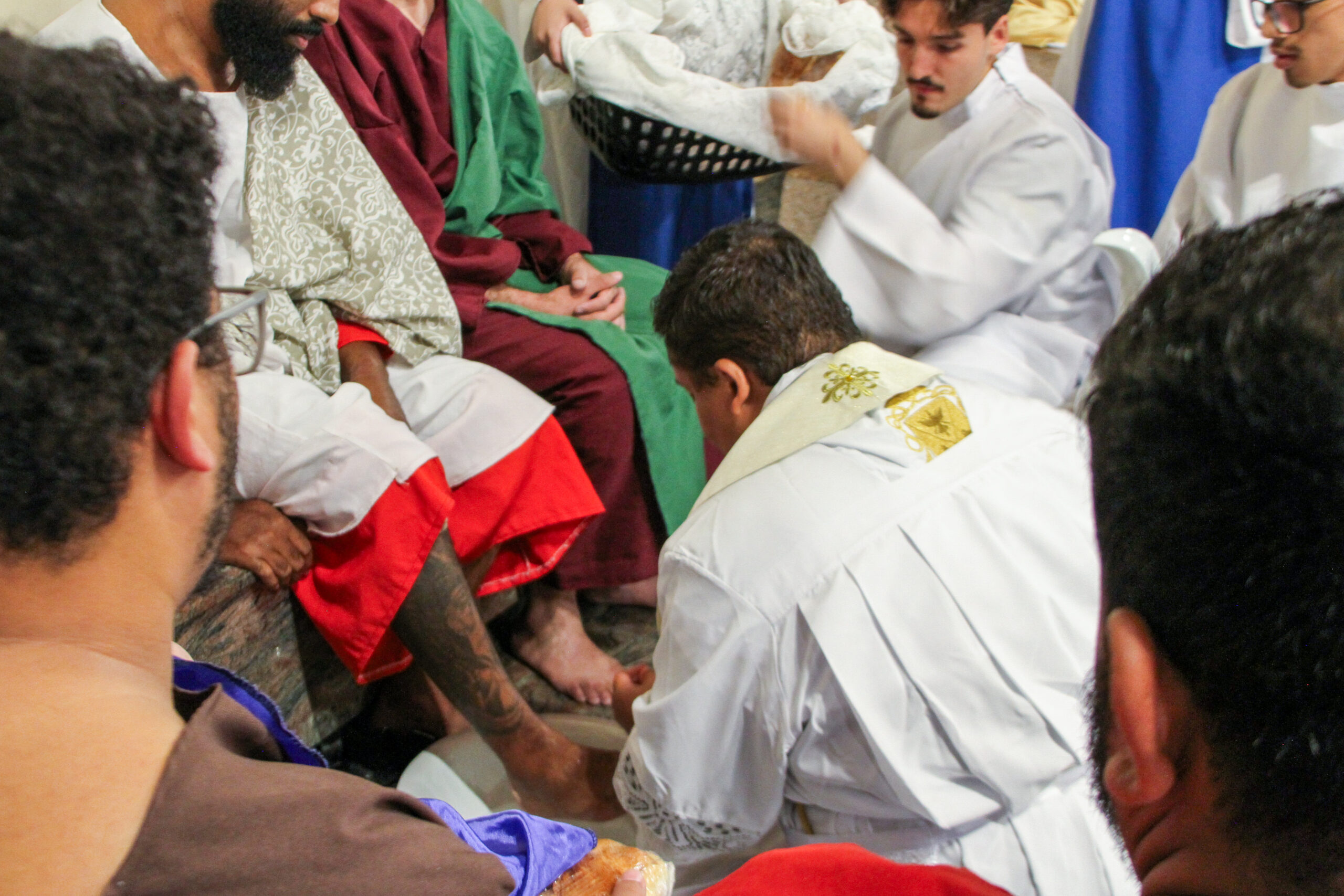 Na noite de 2 de abril, o Santuário Nossa Senhora dos Prazeres e Divina Misericórdia deu início ao Tríduo Pascal com a celebração da Missa da Ceia do Senhor, presidida pelo padre Alberto Gambarini e concelebrada pelo padre Lucas Barboza. A celebração recorda o momento em que Jesus se reúne com os discípulos antes da Paixão, institui a Eucaristia, confia à Igreja o sacerdócio e deixa, no gesto do lava-pés, a marca do amor que se faz serviço. É uma noite que convida os fiéis a contemplar mais de perto a entrega de Cristo e a entrar, com mais profundidade, no mistério do seu amor.