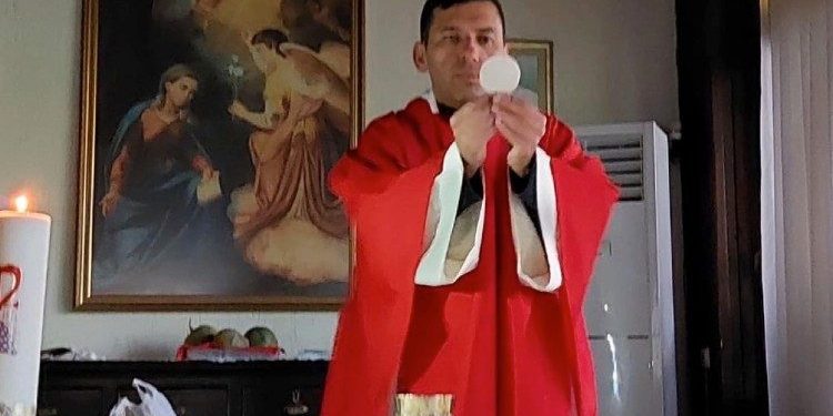“No momento do terremoto [eram 4h17 da madrugada de 6 de fevereiro] eu não saí imediatamente de casa”, recorda. “O terremoto durou dois minutos, depois saí e encontrei algumas freiras e dois voluntários italianos que tinham vindo bater à minha porta. A catedral tinha desmoronado completamente, apenas a abside, o tabernáculo e as estátuas de Nossa Senhora e Santo Antônio foram salvas. Caminhei sobre os escombros para pegar o Santíssimo… foi incrível ver aquela destruição onde, algumas horas antes, eu havia celebrado a Missa”. “Eles vieram imediatamente”, recorda, “a cozinheira com seu marido, depois os paroquianos enrolados em cobertores e descalços, em lágrimas por terem perdido a catedral, a casa de todos”. Eu vivi muita dor em minha vida, mas esta é a primeira experiência de uma tragédia e o conforto e colaboração com o vigário, Monsenhor Paolo Bizzeti e o chefe da Cáritas local, John Farhad Sadredin, é importante”.