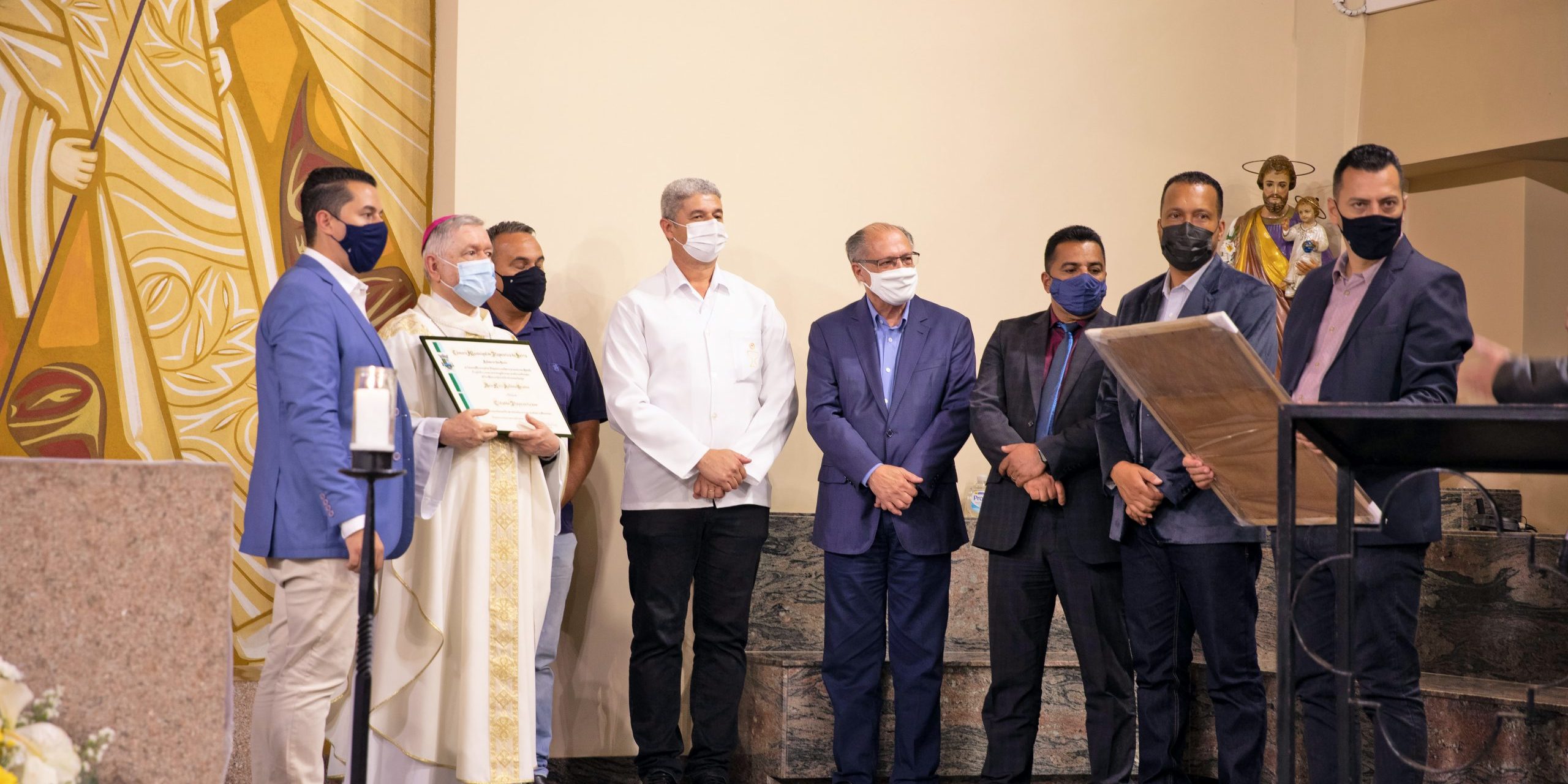 O título foi entregue em um bonito estojo no final da celebração, além de um quadro com duas fotos do bispo em momentos diferentes da festa que celebrou os 30 anos da diocese, comemorado em 2019 no ginásio da cidade.