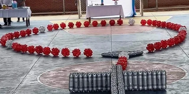 Estudantes constroem rosário com 1.000 garrafas recicláveis