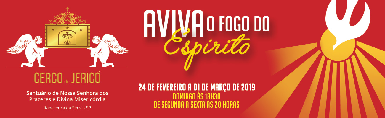 O Cerco de Jericó terá como tema “Aviva o fogo do Espírito”. Será uma semana de combate espiritual e também em preparação para o grande dia de louvor no domingo de carnaval, dia 03 de março, com a participação especial da comunidade Colo de Deus.