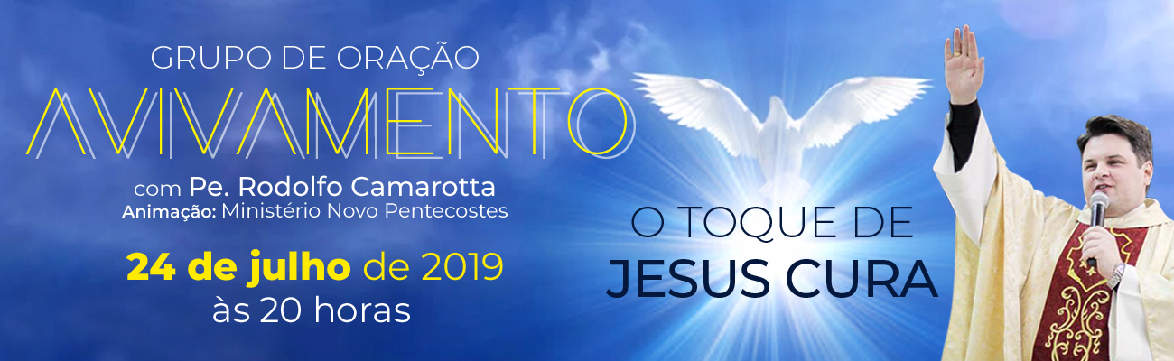 No dia 24 de julho de 2019 será realizado, as 20h, grupo de oração Avivamento com o padre Rodolfo Camarotta no Santuário de Nossa Senhora dos Prazeres e Divina Misericórdia, animação do Ministério Novo Pentecostes.
