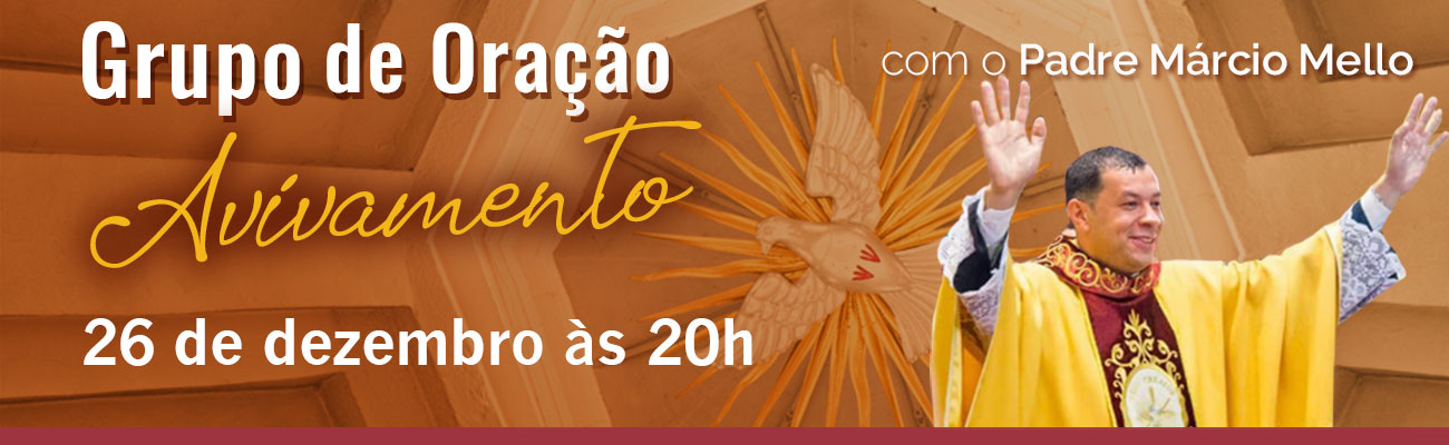 Você está convidado para participar do Grupo de Oração Avivamento que será conduzido pelo padre Márcio Mello no dia 26 de dezembro às 20h, no Santuário Nossa Senhora dos Prazeres e Divina Misericórdia. Será uma noite para experimentar o amor de Deus, com alegria, cânticos e louvores.