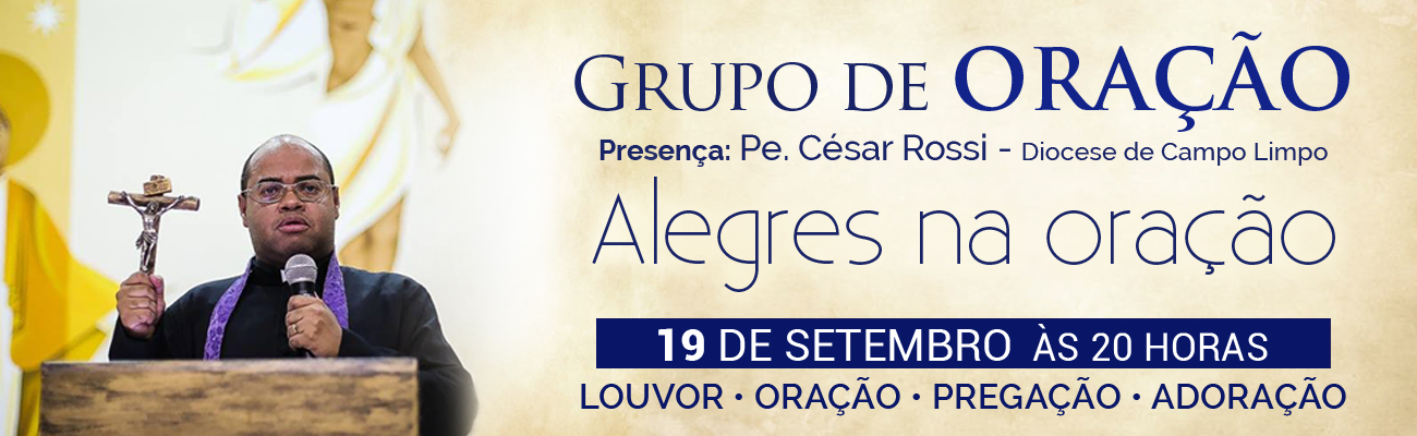 O Santuário Nossa Senhora dos Prazeres e Divina Misericórdia realizará o Grupo de Oração no dia 19 de setembro, às 20h, com a presença do padre César Rossi da Diocese de Campo Limpo. Será uma noite de oração, louvor e adoração!
