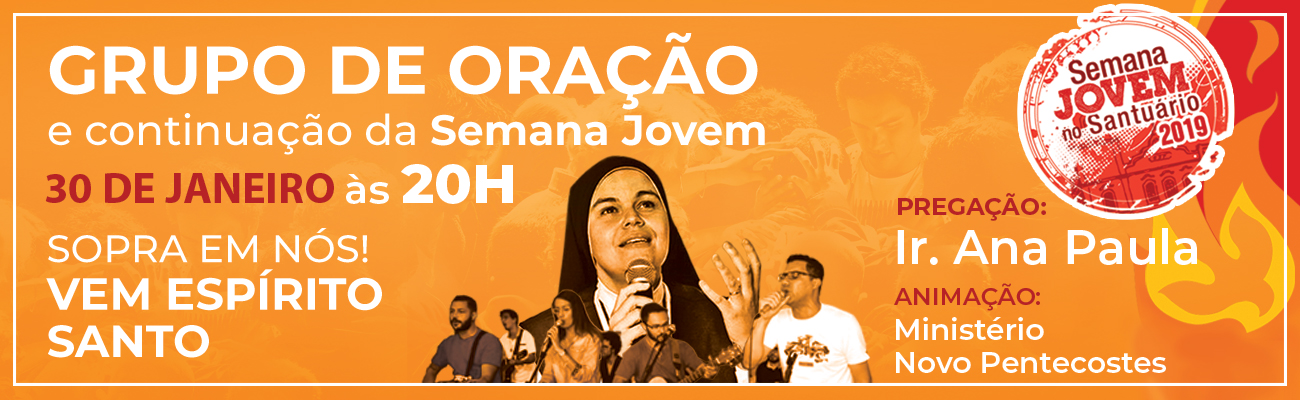 Nesta quarta-feira (30), a Irmã Ana Paula irá conduzir o Grupo de Oração e também a continuação da Semana Jovem, às 20h, no Santuário Nossa Senhora dos Prazeres e Divina Misericórdia. A animação ficará por conta do Ministério Novo Pentecostes.