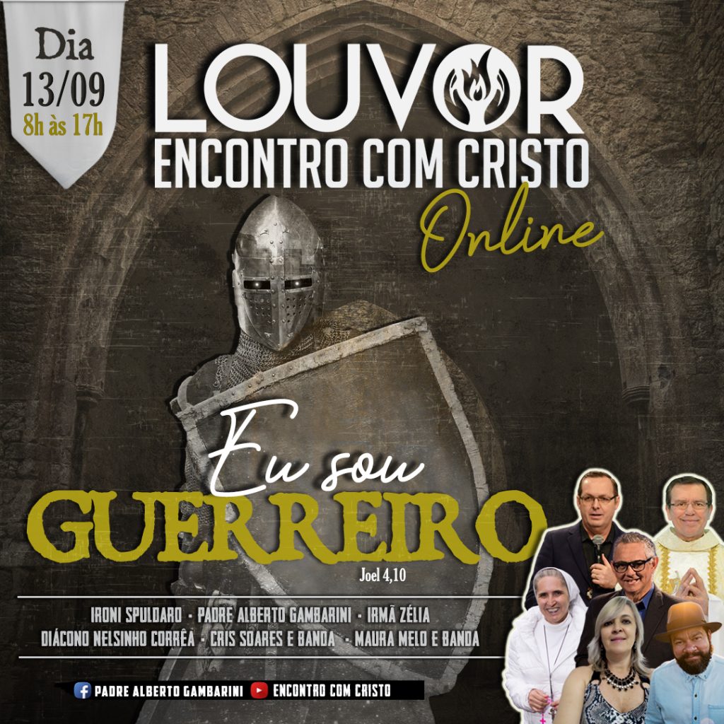 Em consequência da pandemia do novo coronavírus, neste ano, o Louvor Encontro com Cristo do mês de setembro será realizado no dia 13 (domingo), de forma totalmente on-line. Com o tema “eu sou guerreiro” (Joel 4,10), a atração será transmitida através do facebook (padre Alberto Gambarini) e pelo youtube (canal Encontro com Cristo), das 8h às 17h.