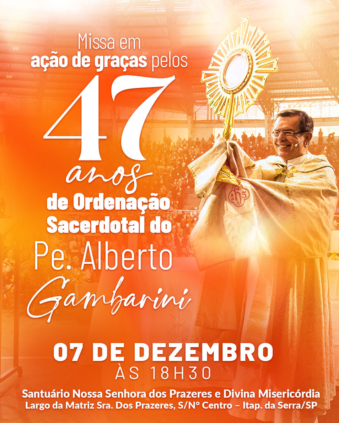 Missa em ação de graças pelos 47 anos de Ordenação Sacerdotal do padre Alberto Gambarini – 18h30