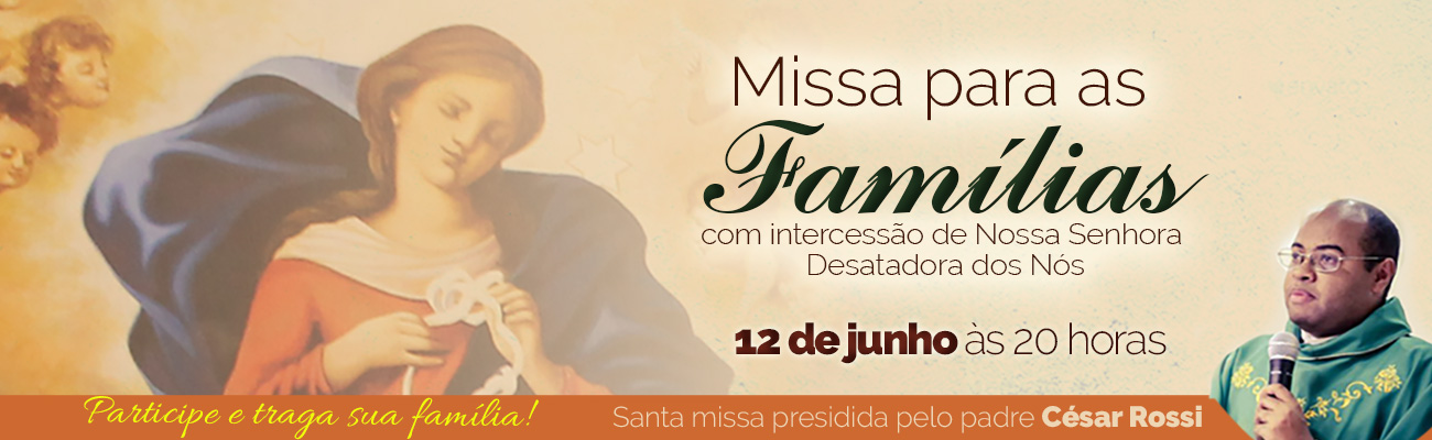O Santuário Nossa Senhora dos Prazeres e Divina Misericórdia realizará no dia 12 de junho, a Missa para as Famílias com intercessão de Nossa Senhora Desatadora dos Nós. A santa missa será presidida pelo padre César Rossi, às 20h.