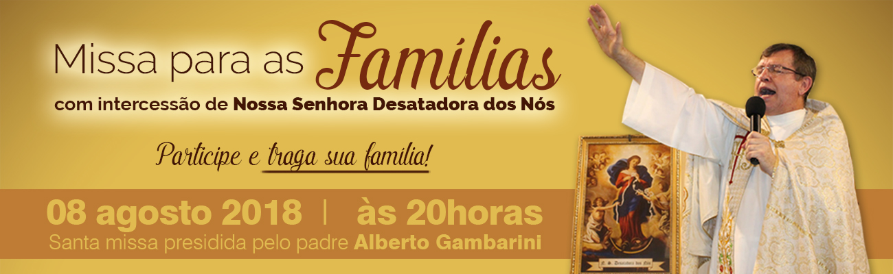 O Santuário Nossa Senhora dos Prazeres e Divina Misericórdia realizará no dia 8 de agosto, a Missa para as Famílias com intercessão de Nossa Senhora Desatadora dos Nós. A santa missa será presidida pelo padre Alberto Gambarini, às 20h.