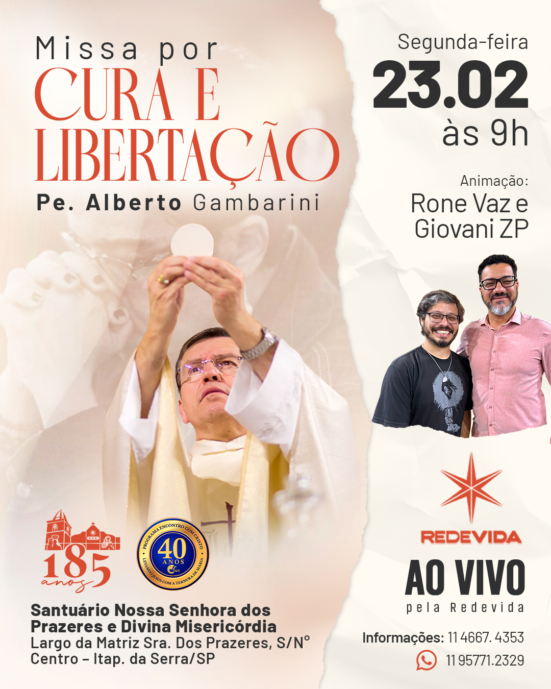 Missa por Cura e Libertação com pe. Alberto Gambarini – 09h
