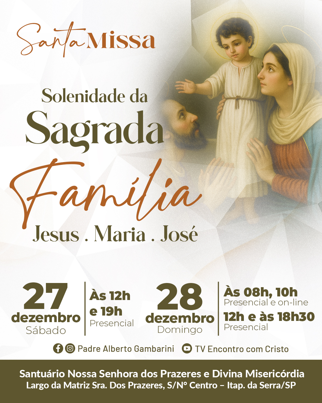 Santa Missa: Solenidade da Sagrada Família – 12h e às 19h