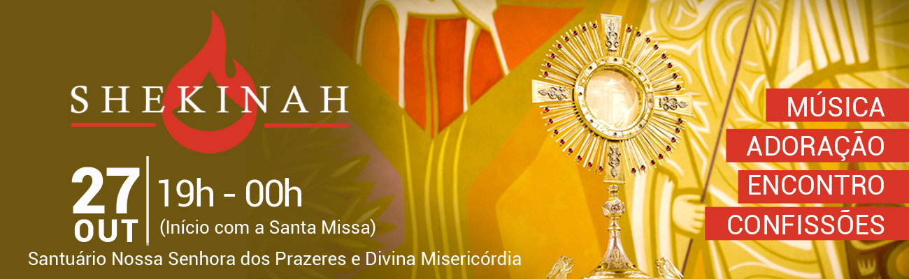 Participe do Shekinah, uma noite de oração, adoração e confissões. No dia 27 de outubro, início às 19h com a Santa Missa e término 00h, no Santuário Nossa Senhora dos Prazeres e Divina Misericórdia.
