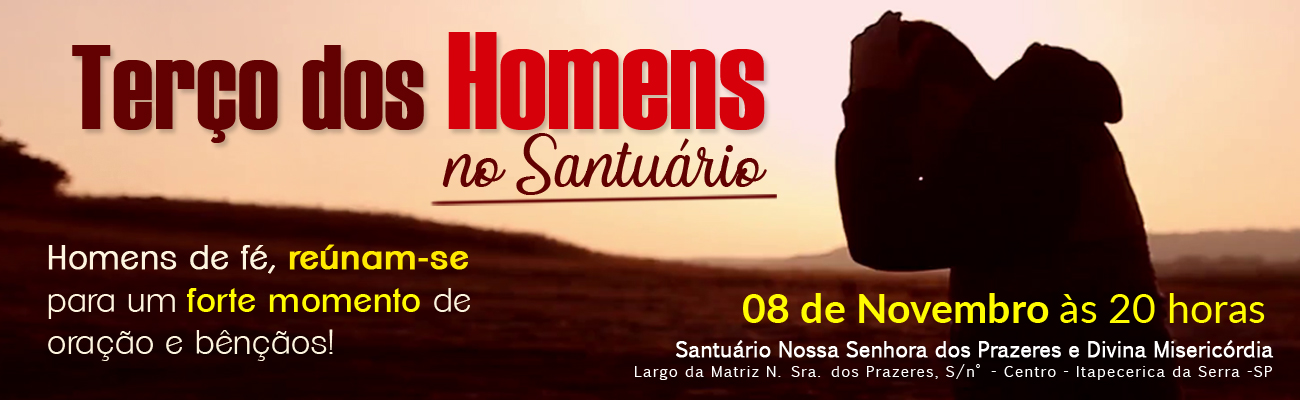 Homens venham rezar o Terço dos Homens no Santuário Nossa Senhora dos Prazeres e Divina Misericórdia no dia 08 de novembro às 20h.