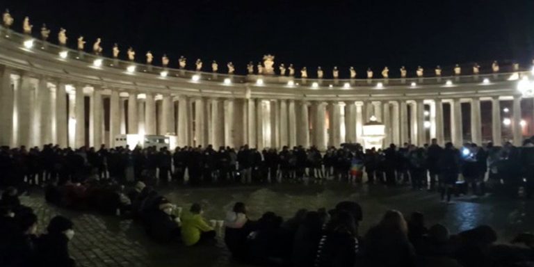 O centro da vigília dos escoteiros foi a leitura do Sermão da Montanha no Evangelho de São Pedro, um momento de reflexão que se tornou emocionante, quando essas mesmas palavras ressoavam em ucraniano no frio da Praça São Pedro. Os organizadores também incluem a história de Caim e Abel do Livro do Gênesis, aquela das “raízes do mal” em que o homem, nomeado guardião de seu irmão, torna-se seu assassino, descobrindo a violência e o pecado. Palavras que são explicadas por outras palavras, incluindo da Encíclica de Francisco, Laudato si’: “Quando todas estas relações são trocadas, quando a justiça mais habita na Terra, a Bíblia nos diz que toda a vida está em perigo”.