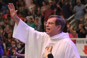 “Jesus quer incendiar sua vida”, assim começou a segunda pregação do padre Alberto Gambarini. Ele refletiu sobre o fogo que simboliza o poder transformador do Espírito Santo que serve para queimar, purificar e ferver. “Incendeia-me, faz de mim uma brasa ardente!”, pediu o padre.