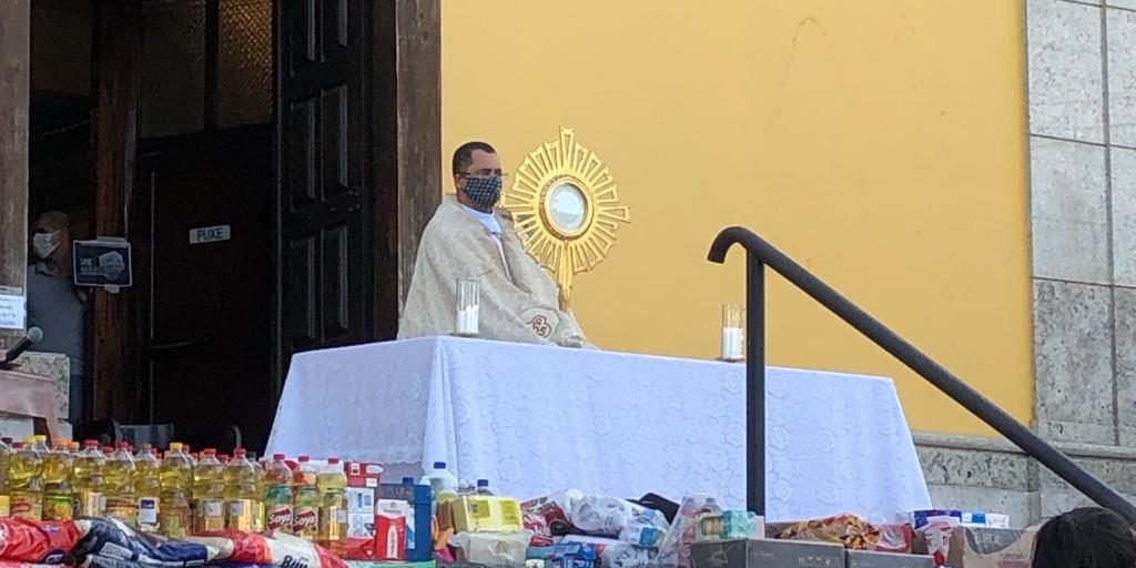 Movidos pela compaixão e pelo ato de amor, centenas de pessoas passaram pela igreja e, a pé ou de carro, deixaram as suas contribuições, que eram arrecadados nas escadarias do Santuário, formando um grande “tapete de alimentos”. Os fiéis também aproveitaram o momento para rezar na praça, já que entrar na igreja não era permitido.