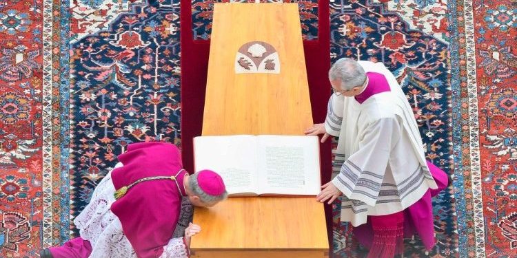 Francisco nomeou Bento uma única vez, no final, mas as referências são extraídas de textos do Papa emérito: a Encíclica “Deus caritas est”, a homilia na Missa Crismal de 2006 e a missa do início do seu pontificado.