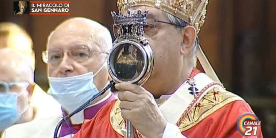 “Louvado seja Jesus Cristo! Queridos amigos, queridos fiéis todos. Mais uma vez, com alegria, com emoção, informo que o sangue do nosso padroeiro, Januário, se liquefez. Totalmente liquefeito, sem grumos, como aconteceu nos últimos anos, sinal de amor, de bondade, da misericórdia de Deus e da proximidade, da amizade, da fraternidade de nosso São Januário. Seja dada glória a Deus e veneração ao nosso santo. Amém”, foram as palavras do Cardeal na Catedral de Nápoles.
