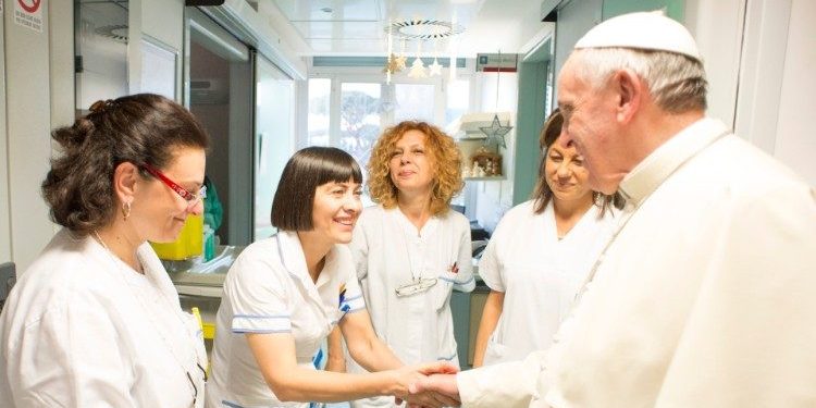 Francisco destaca que “os enfermeiros sempre tiveram um papel central na assistência sanitária. No contato diário com os doentes, fazem experiência do trauma que o sofrimento provoca na vida duma pessoa. São homens e mulheres que optaram por dizer «sim» a uma vocação específica: ser bons samaritanos que se ocupam da vida e das feridas do próximo. Guardiões e servidores da vida, ao mesmo tempo que ministram as terapias necessárias, infundem coragem, esperança e confiança”.