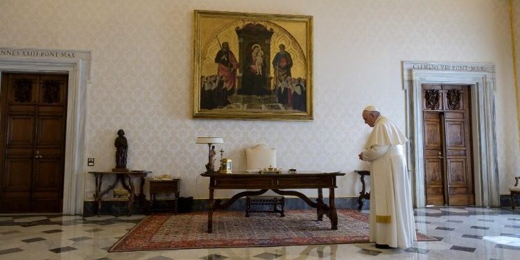 O Papa Francisco rezou a oração do Pai-Nosso, da Biblioteca Apostólica, no Vaticano, ao meio-dia, hora local, desta quarta-feira (25/03), Solenidade da Anunciação do Senhor.