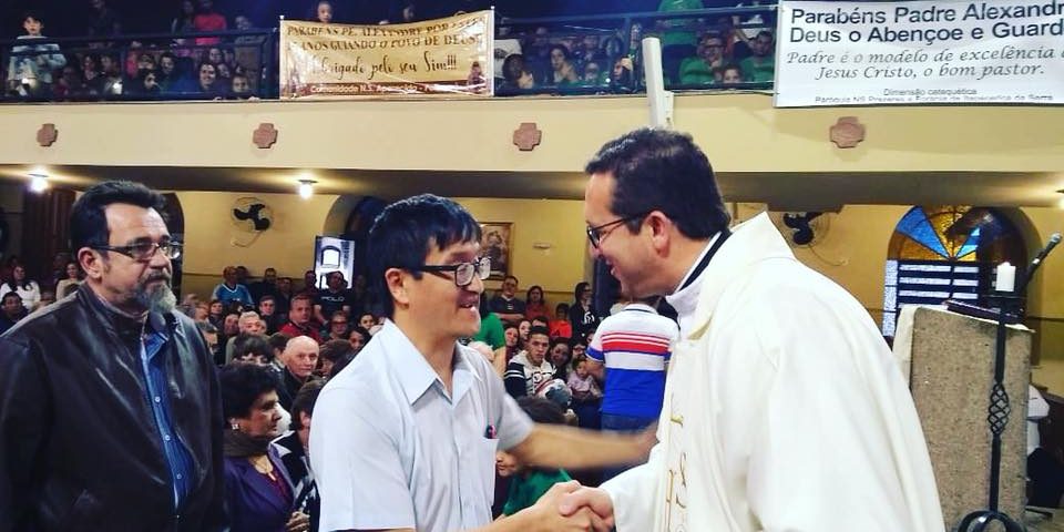 Padre Alexandre recebeu o sacramento da Ordem no dia 15 de agosto de 2003, pelas mãos do bispo Dom Emílio Pignoli, na Catedral Sagrada Família, no Campo Limpo.