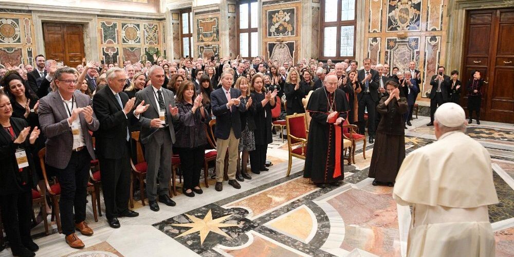 Ao dar-lhes as boas-vindas, Francisco agradeceu-lhes mais uma vez por sua colaboração no importante trabalho de conservação e restauração do patrimônio artístico e cultural dos Museus Vaticanos. O compromisso de vocês, disse o Papa, é um sinal concreto de seu apreço pelo potencial das artes, em suas muitas formas, de abrir mentes e corações para a beleza da criação e para a misteriosa riqueza de nossa vida e vocação humanas.