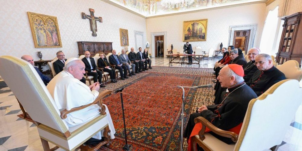 Na saudação, o Papa lembrou a declaração feita em 2019 sobre “o apelo para que Jerusalém seja considerada ‘patrimônio comum da humanidade e especialmente para os fiéis das três religiões monoteístas, como lugar de encontro e símbolo de coexistência pacífica”. No Evangelho, continuou Francisco, Jerusalém é “o coração da fé cristã”, lugar onde acontecem vários episódios da vida de Jesus e onde “a Igreja nasceu”.