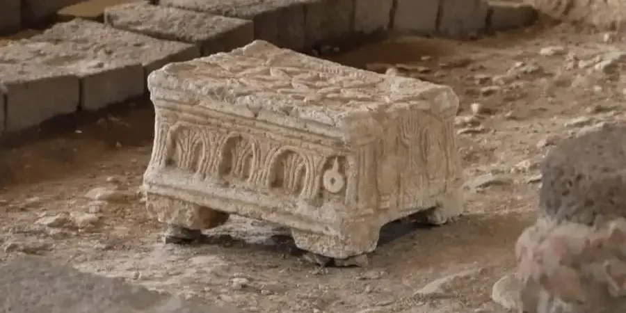 A pedra encontrada nas escavações da sinagoga apresenta relevos que representariam o Segundo Templo de Jerusalém, que existiu por quase seis séculos e foi destruído por volta do ano 70 depois de Cristo.