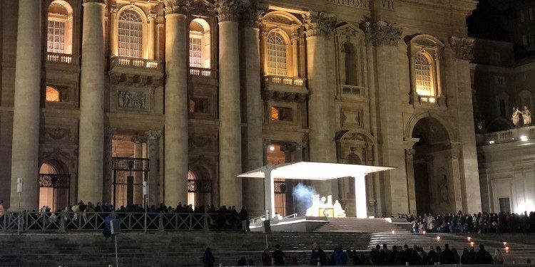 Praça São Pedro acolhe fiéis para adoração eucarística noturna