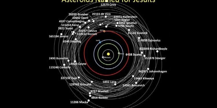 Mais de trinta asteroides levam hoje o nome de religiosos jesuítas. Dentre eles o pe. Christopher Clavius, encarregado por Gregório XIII para trabalhar no projeto do calendário – o “seu” asteroide é chamado 20237 Clavius - e o pe. Giovanni Battista Riccioli (1598-1671) que desenvolveu o sistema de nomenclatura lunar usado ainda hoje. O agora conhecido “Mar da Tranquilidade” em que pousou a Apollo 11, por exemplo, deve seu nome a ele. Como os jesuítas viajaram muito durante séculos, outros desses asteroides representam diferentes partes do mundo, como as Filipinas (4866 Badillo), Paraguai (6438 Suarez), China (31124 Slavicek), República Democrática do Congo (23443 Kikwaya) e Argentina (2490 Bussolini). Vários outros asteroides foram nomeados por astrônomos do Observatório Vaticano, incluindo 302849 Richardboyle, 119248 Corbally, 14429 Coyne, 4597 Consolmagno, 23443 Kikwaya e 11266 Macke.